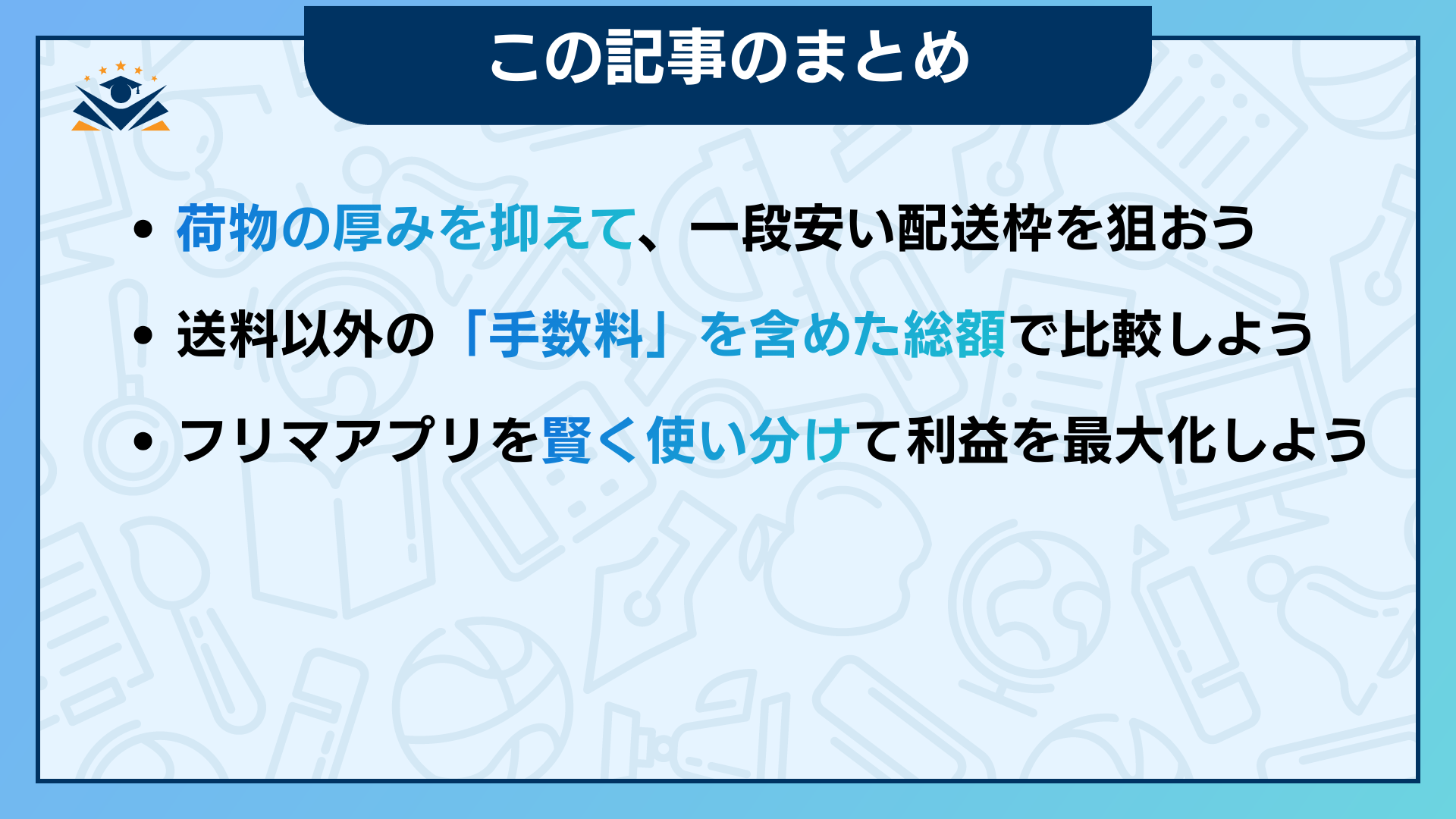 本記事では、3大フリマアプリの送料を徹底比較し、利益を残すためのサイズ別最安ルートや配送戦略を解説しました。