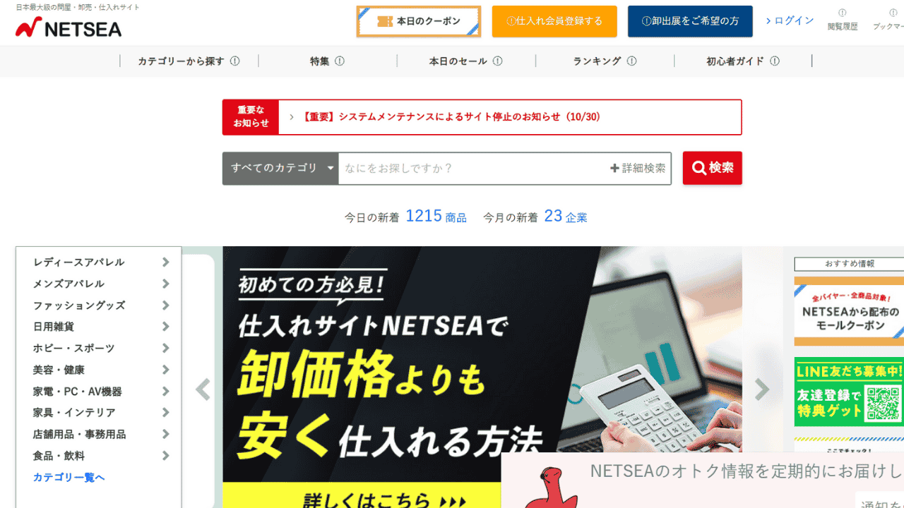 NETSEAは、常時230万点以上の商品が掲載されている日本最大級のBtoB(企業間取引)卸売プラットフォームです。