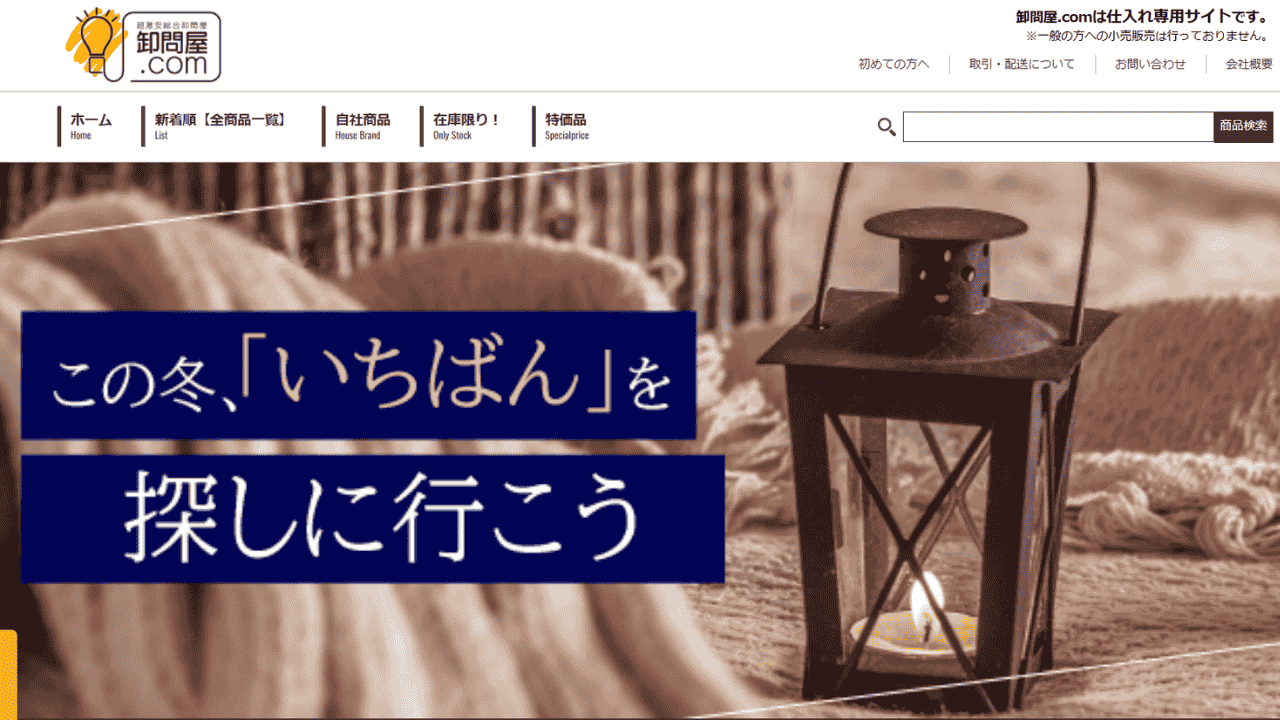 卸問屋.COMは、ガジェットや日用雑貨、カー用品など幅広いジャンルを扱う総合卸売サイトです。