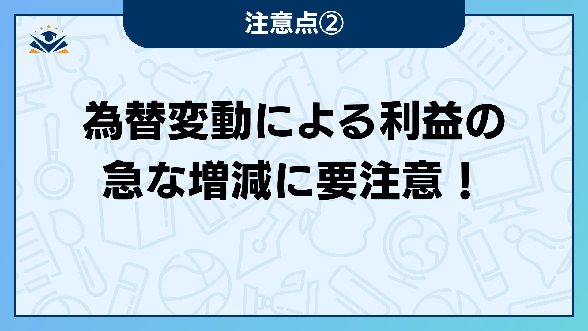 海外取引では常に為替レートの動きをチェックし、円高による予期せぬ利益減少のリスクに備える必要があります。